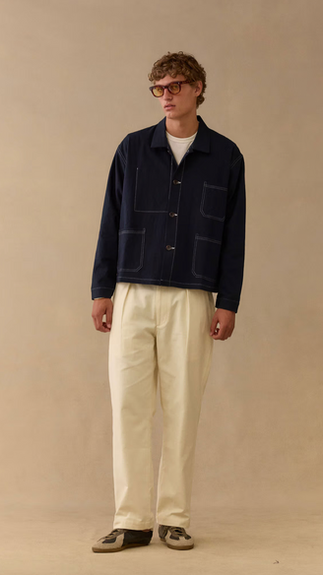 The collection features high-quality Japanese cotton long-sleeve shirts, complemented by board shorts that resemble tailored silhouettes rather than conventional swimwear. The outcome is a polished, casual uniform that balances leisure and formality with ease. Deconstructed suiting components throughout the collection, transforming traditional silhouettes into flowing and modern designs, while new seersucker items—especially the long-sleeve camp collar shirt—refine the seasonal aesthetic.